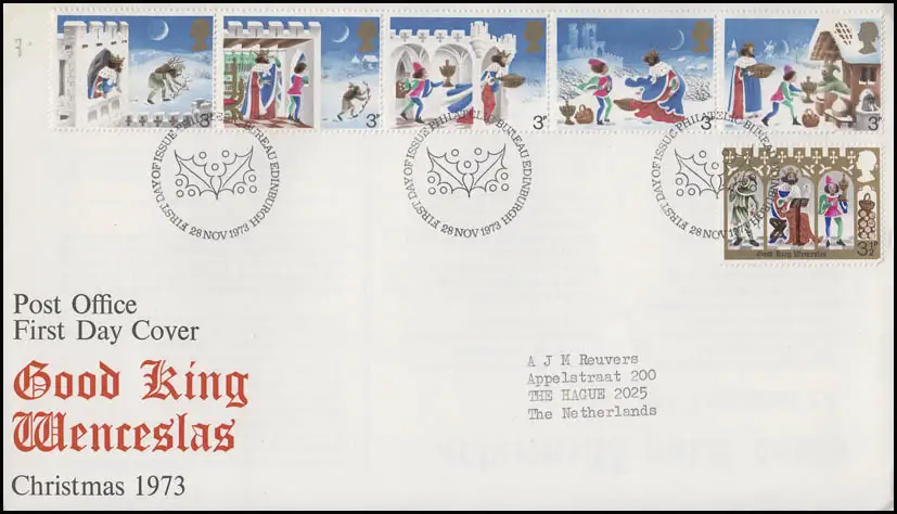 Großbritannien Weihnachten Christmas 1973 als ZD-Streifen, MiF FDC Edinburgh