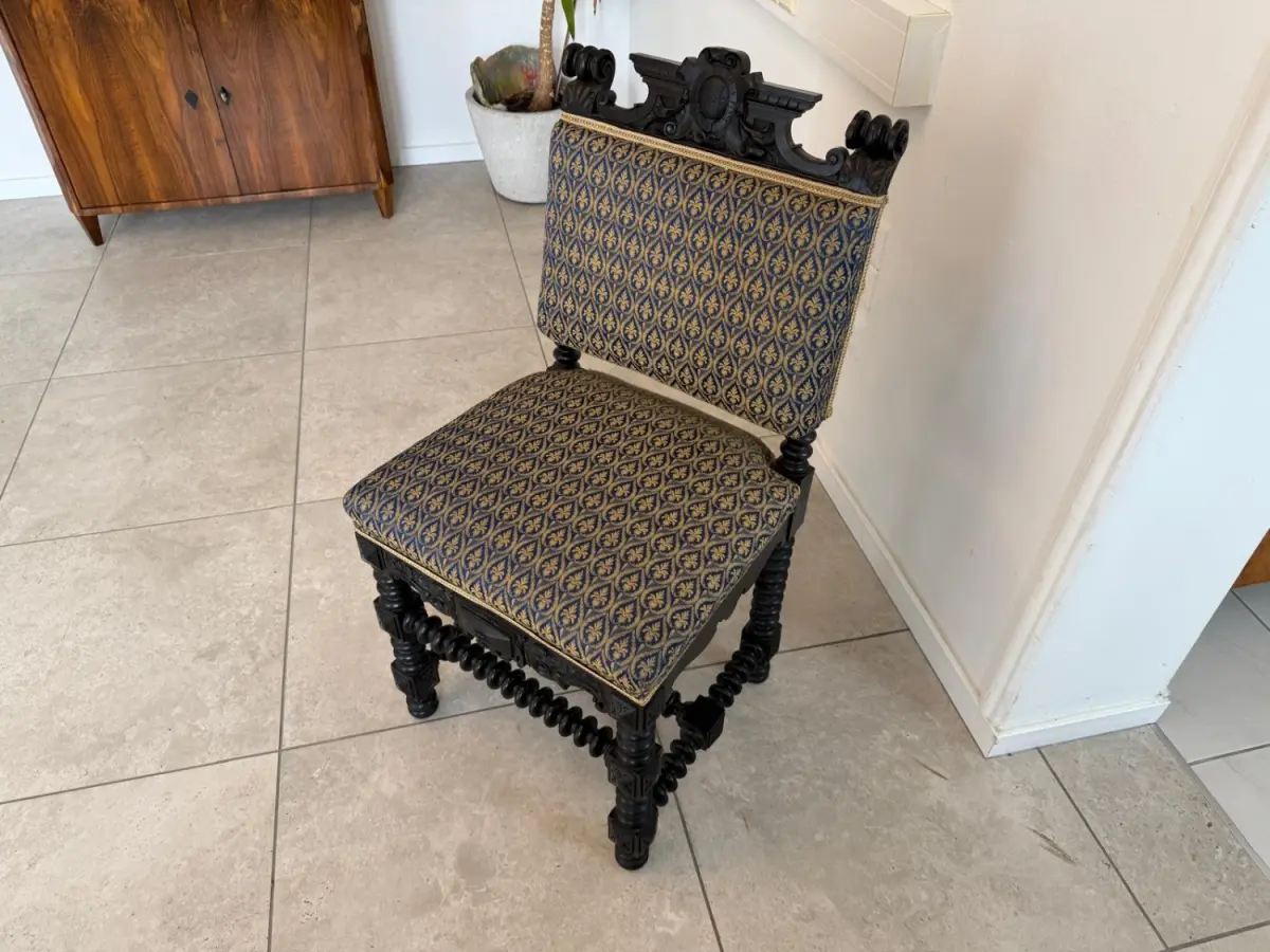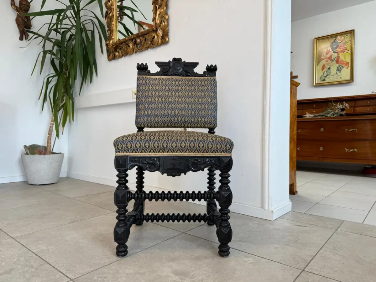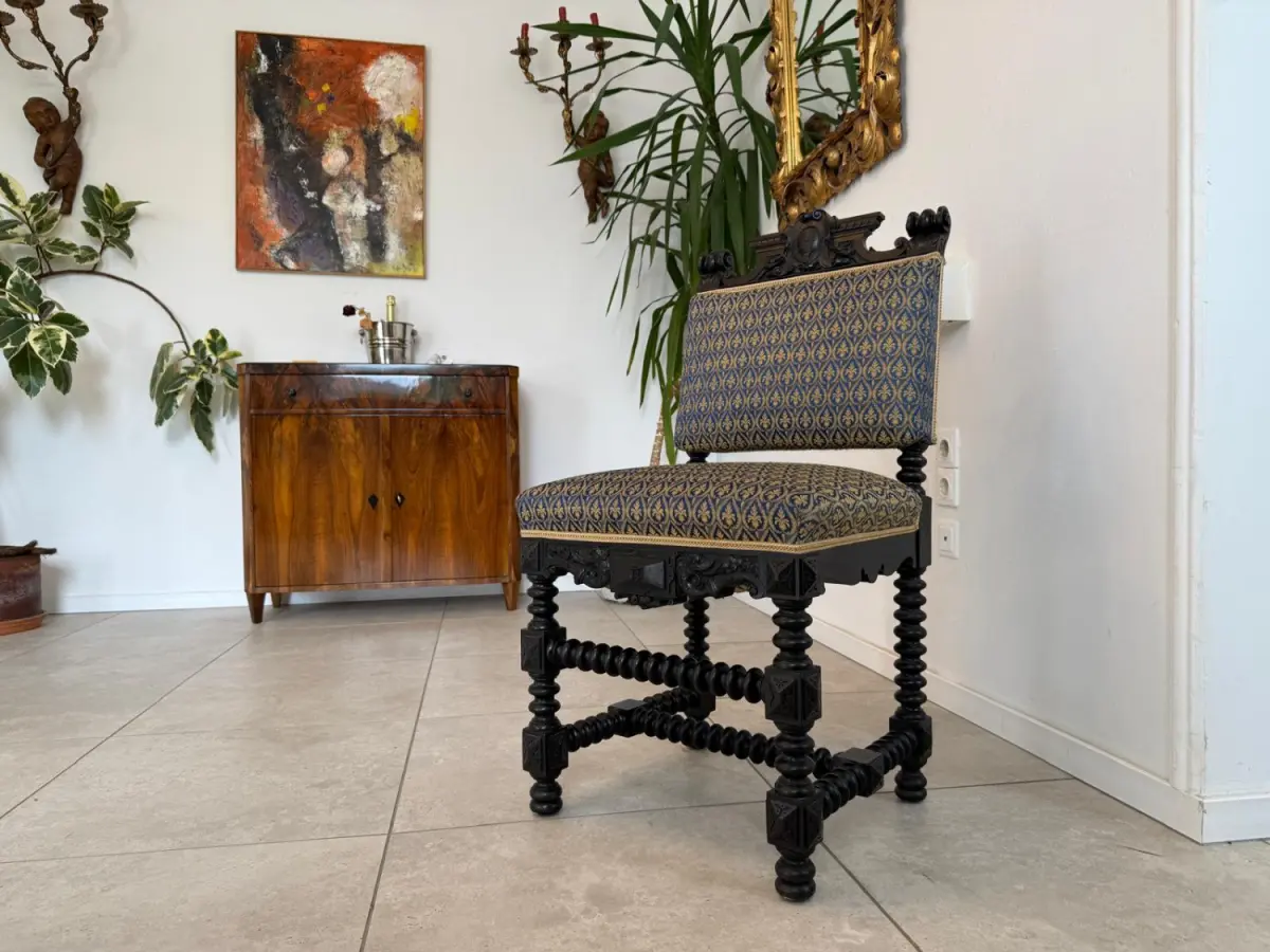 die typischen Merkmale der Epoche: aufwendig gedrechselte Beine und Verstrebungen, fein gearbeitete Schnitzereien sowie ein kräftiger, charaktervoller Aufbau.