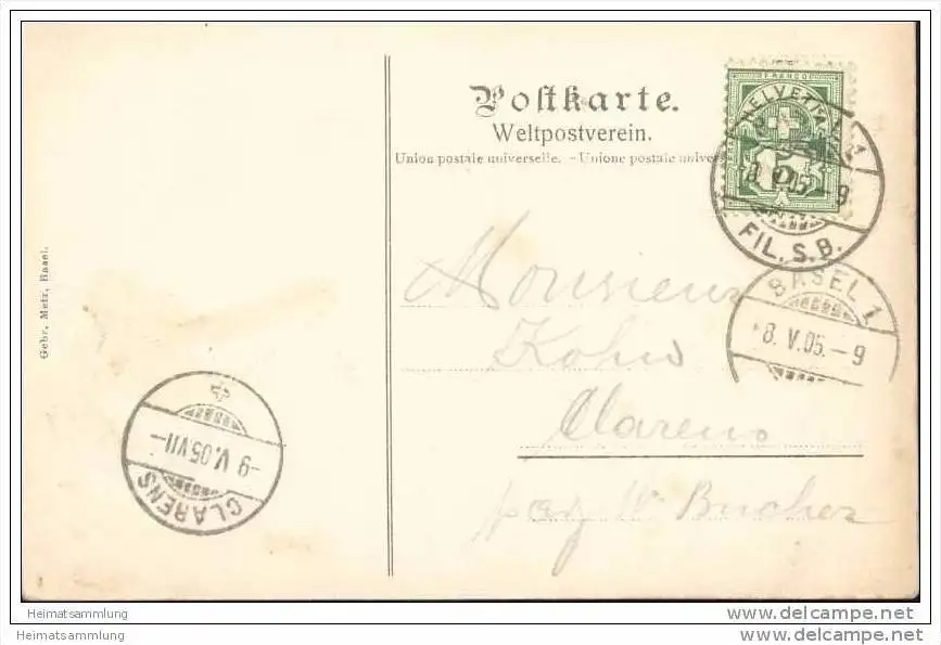 Gruss aus Basel - Verlag Gebr. Metz Basel - Gebrauchsspuren - Knick oben rechts (G20591) gel. 1905