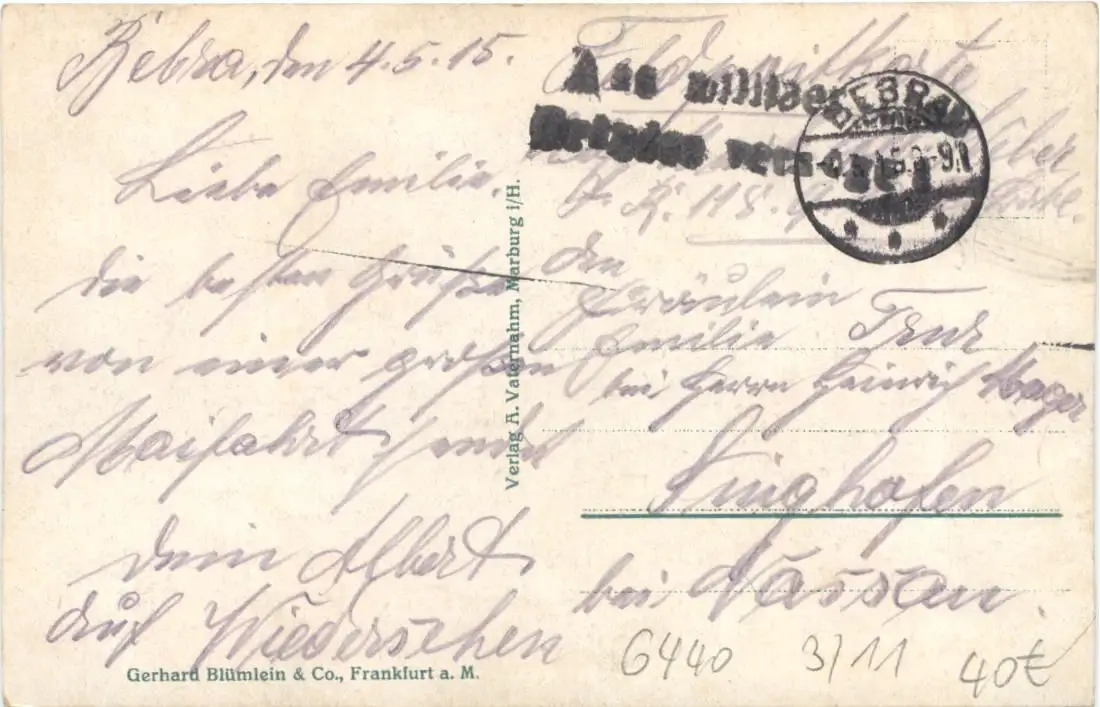 Danke. Alles Bestens. Können Sie mir allenfalls mitteilen, aus welchem Jahr die Postkarte stammt? Besten Dank.