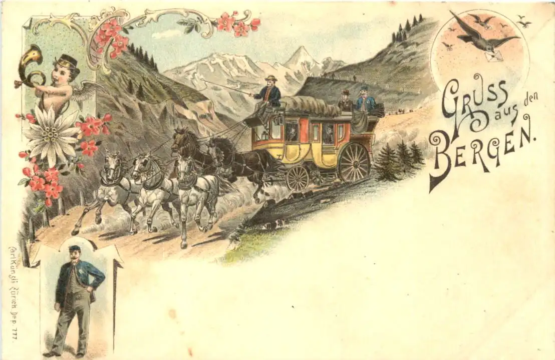 Gruss aus den Bergen - Litho - Postkutsche -784288