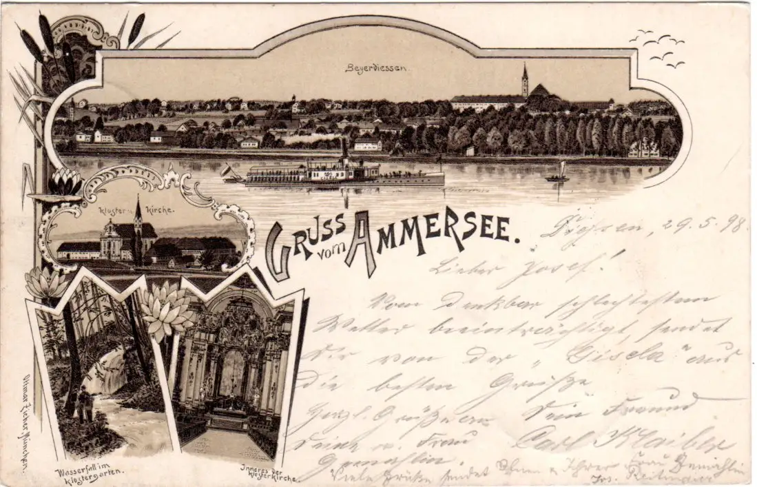 Gruß vom Ammersee m. Beyerdiessen, 1898 v. Erling gebr. Litho-AK