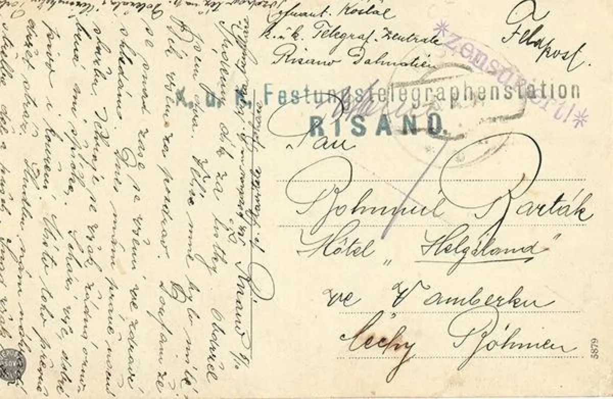 Bemerkungen: Feldpost, gelaufen 1916. Gestemp.: K. u. K. Festungstelegraphenstation Risano. Zensuriert!