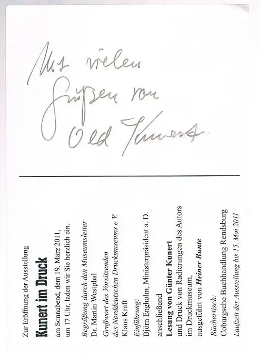 Schlagworte: Autogramm Karte signiert, Günter Kunert, deutscher Schriftsteller, Weitere Medien, Schriftsteller, Autographen, Postkarten