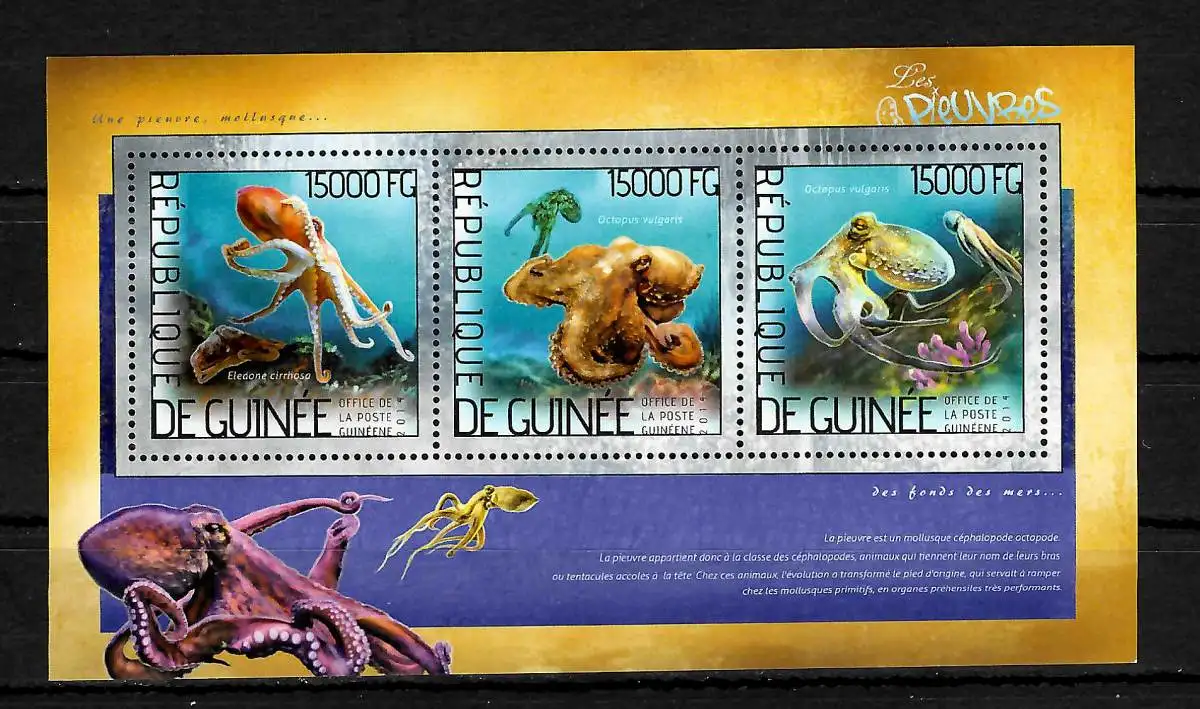 Guinea: une pieuvre, mellusque, Octopus, Tintenfisch, Block postfrisch