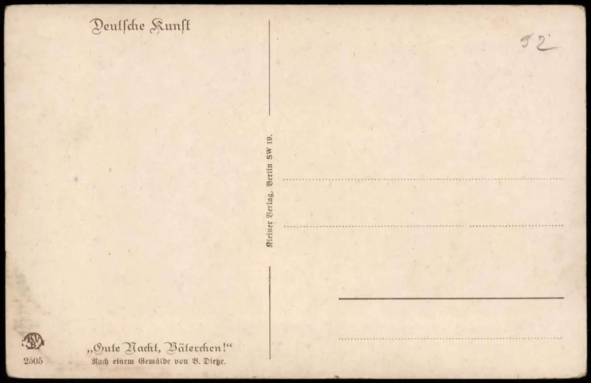 Name: Gute Nacht, Väterchen! Mädchen Bild des Vaters Kinder Künstlerkarte