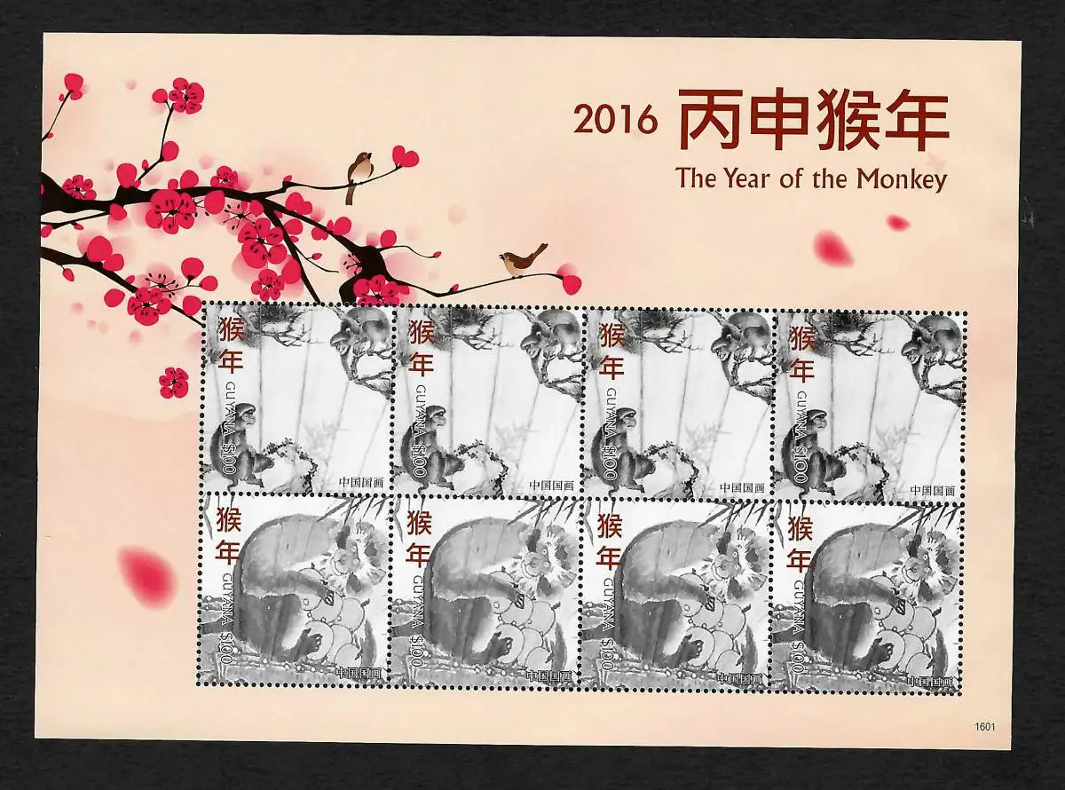 Guyana: The year of the monkey 2016, Jahr des Affen, postfrisch