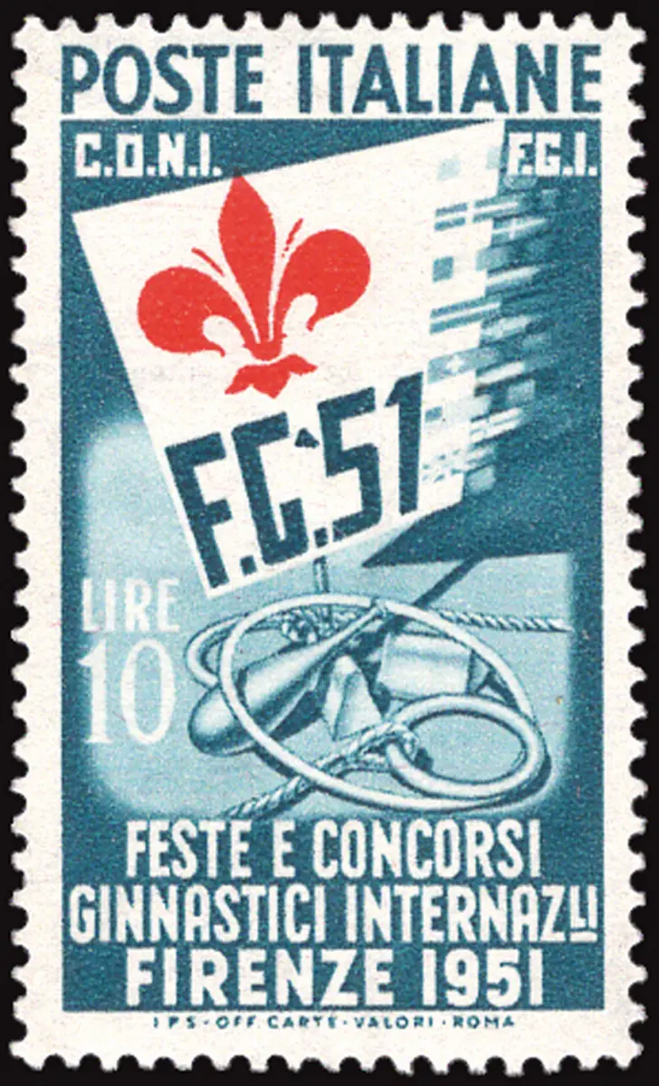 MNH - Vollgummi - - Gymnici Lire 10 Nr. 662d schönes Exemplar mit vielfältigen Übertragungen Posiz. 14 Dreiecke zwischen 5 und G - sehr frisch und gut zentriert - Kat. euro 700 Cod.600/182