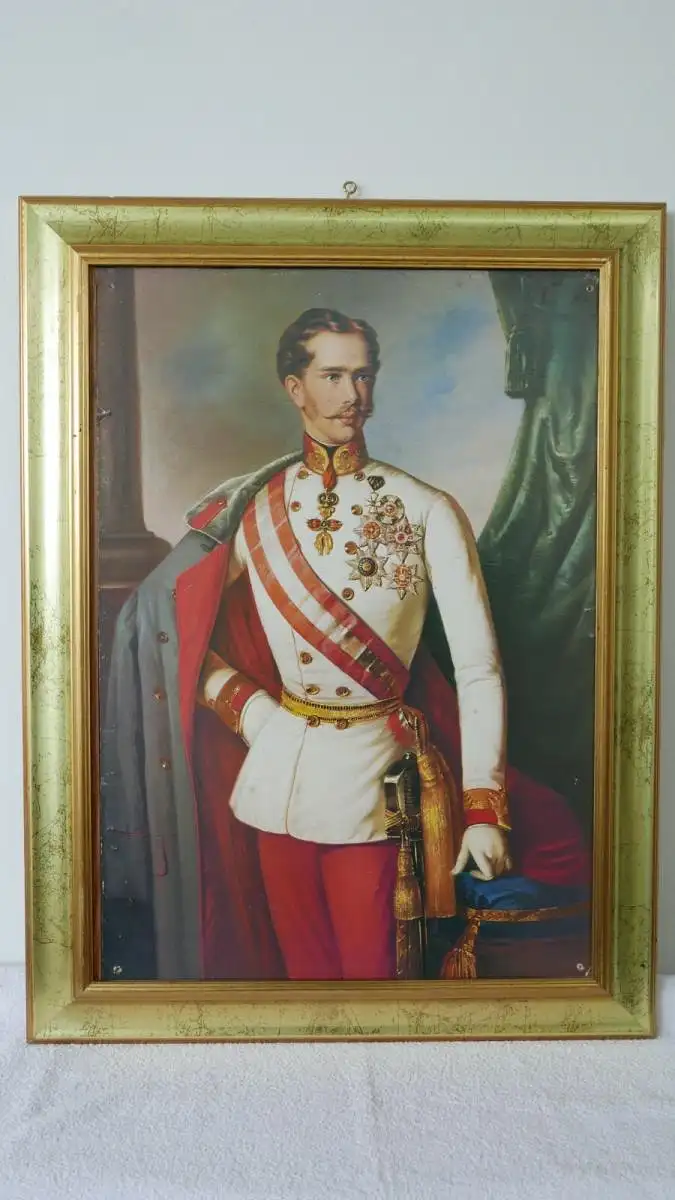 Ein schöner Druck, gerahmt, Motiv der Kaiser, bestoßen daher besonders für Liebhaber geeignet die etwas basteln möchten, die Bilder sind Teil der Beschreibung und sprechen für sich. \n\nMaße: ca. 62,5 cm breit ca. 82,5 cm hoch ca. 7 cm Rahmen \n\nArtikelnummer: H104