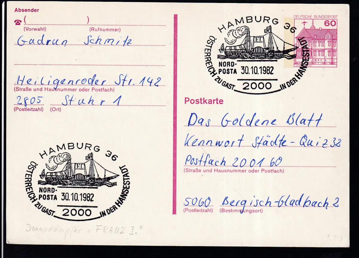 HAMBURG 36 2000 /ÖSTERREICH ZU GAST IN DER HANSESTADT NORD-POSTA 30.10.1982 auf GanzsacheÖsterreich