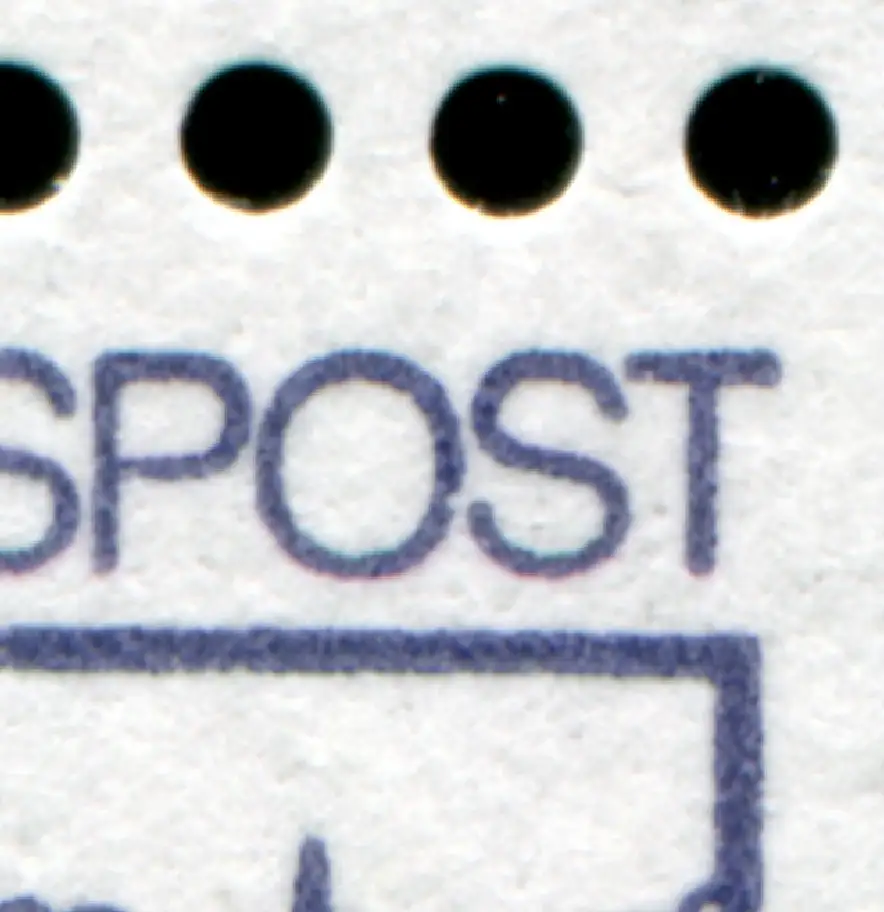 neue Fluoreszenz, MICHEL-Plattenfehler LIII auf Feld 7: Kerbe im O von BUNDESPOST