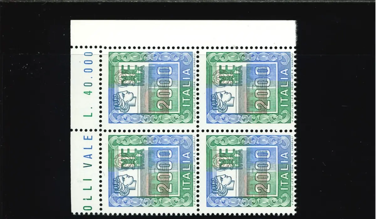 MNH - Vollgummi - HOHER WERT 2000 L. KOPF NACH OBEN VIERTEL BLATTECKE VERSCHOBEN - Kat. euro 400 Cod. ITAV_0501