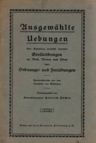 Ausgewählte Übungen; Eine Sammlung praktisch erprobter Geräteübungen an Reck, Barren und Pferd, sowie Ordnungs- und Friübungen; Heinrich Häcker