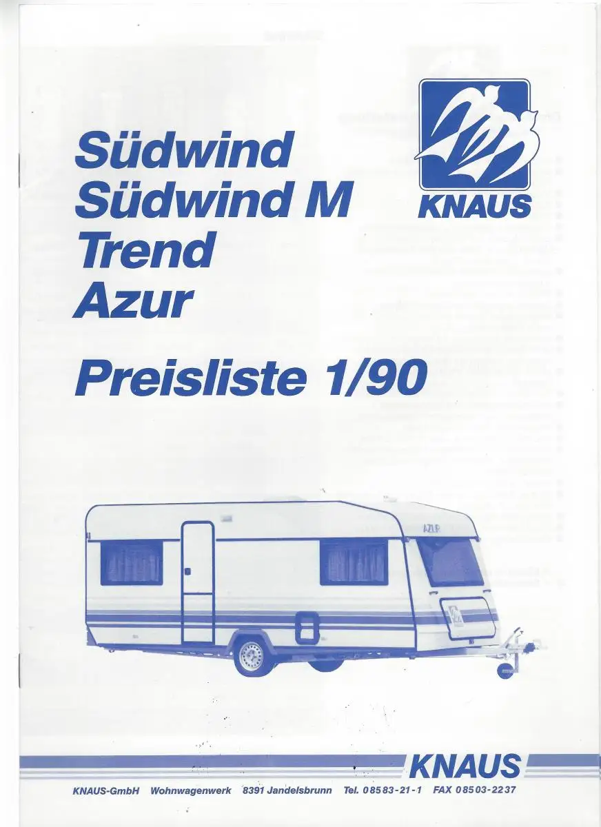 Händlerverzeichnis Knaus-Service in Europa, so wie zwei Preislisten vom Traveller und Südwind.