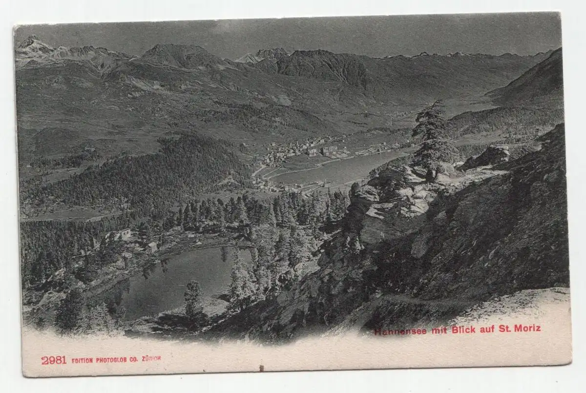 Hahnensee mit Blick auf St. Moriz. jahr 1906