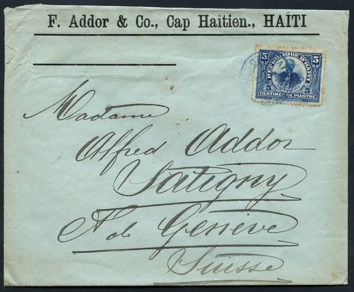 Bedarfsbrief aus Cap Haitien über Port-au-Prince nach Satigny in die Schweiz gelaufen.