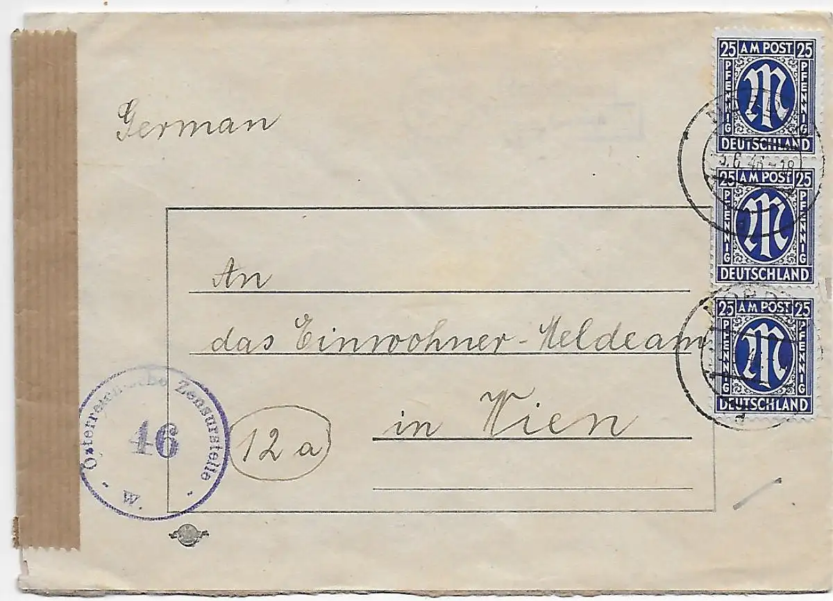 Halbermond 1946 nach Wien, MeF, Österreichische Zensurstelle