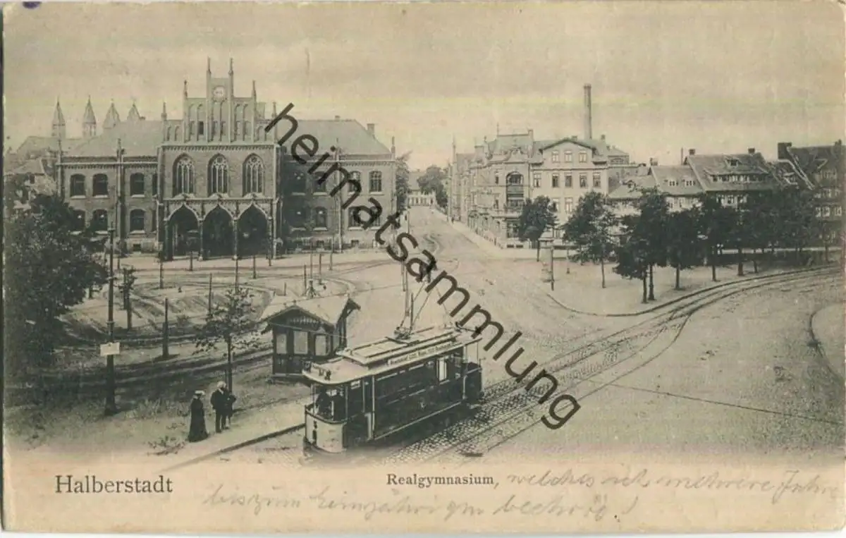 Halberstadt - Realgymnasium - Strassenbahn - leichte Gebrauchsspuren (G4692) gel. 1907