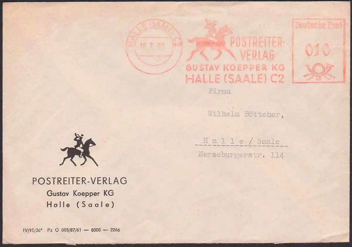 Halle AFS Postreiter Verlag Gustav Koepper KG, Abb. Postillion auf Pferd