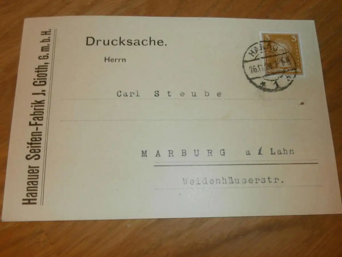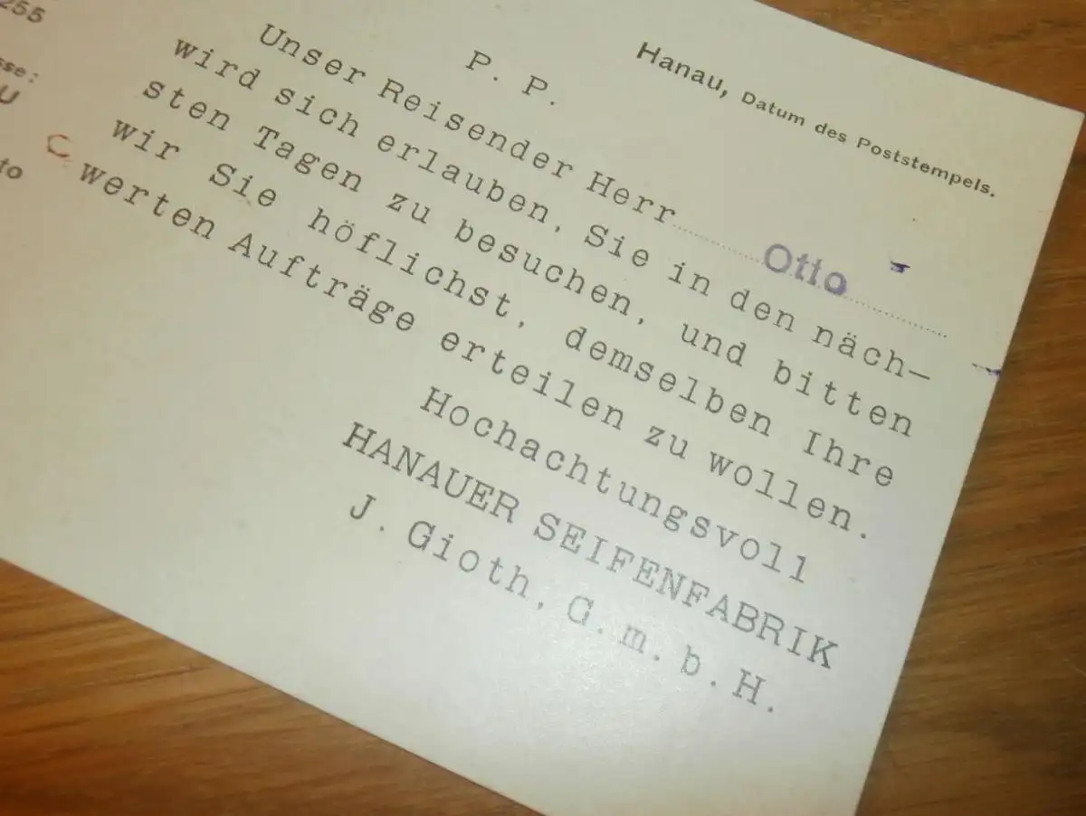 Hanauer Seifenfabrik - J. Gioth in Hanau am Main , 1928 , Drucksache , altes Dokument !!AZ9-Z/1