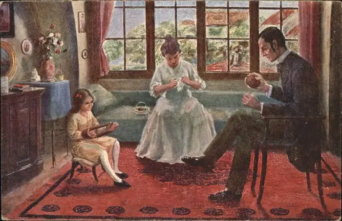 Handarbeit Stricken Familie Handarbeit postalisch nicht gelaufen bis 1920 Alte Ansichtskarte Postkarte