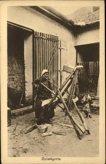 Handwerk Holzsaegerin Handwerk postalisch nicht gelaufen 1921-1965 Alte Ansichtskarte Postkarte