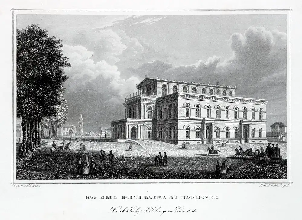 Hannover: Das neue Hoftheater. Originaler Stahlstich um 1850
