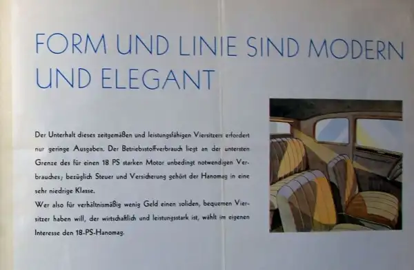 Hanomag 18 PS Modellprogramm 1932 "Der wirtschaftliche Viersitzer" Automobilprospekt (8160)
