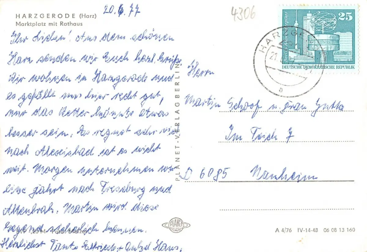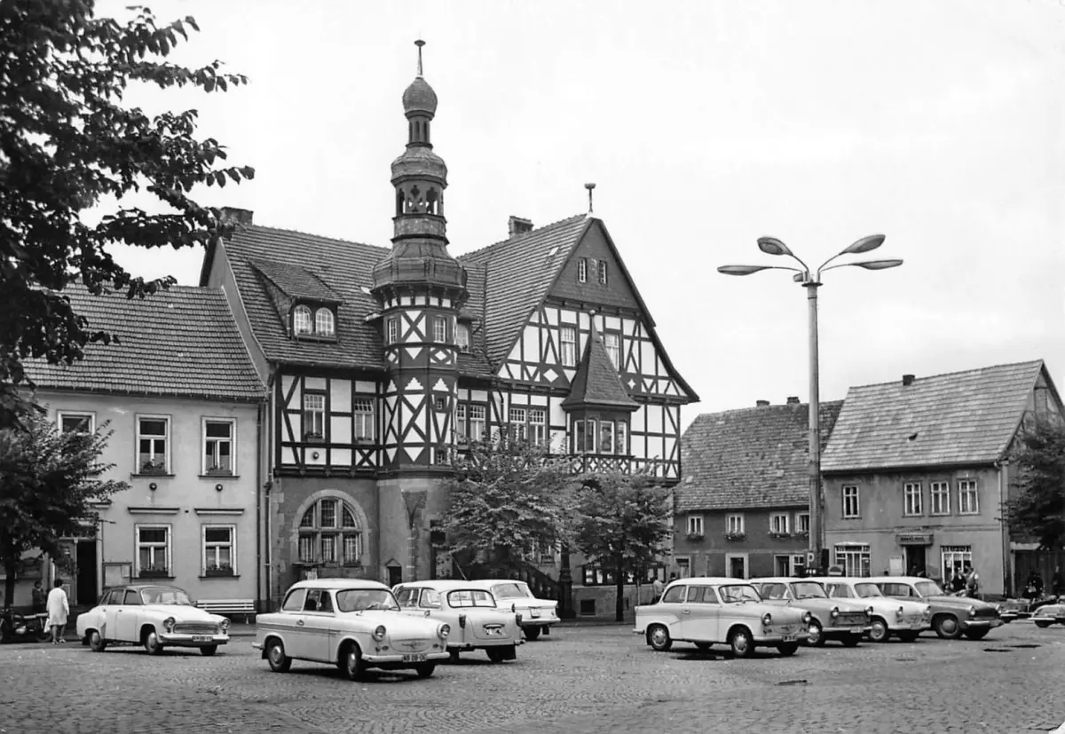 Harzgerode Marktplatz mit Rathaus gl1977 177.029