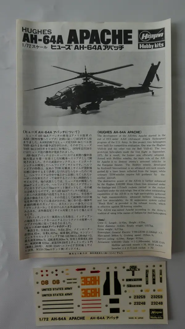 Hasegawa AH-64A Apache U.S. Army Attack Helicopter-1:72-E22-Modellflieger-OVP-0523