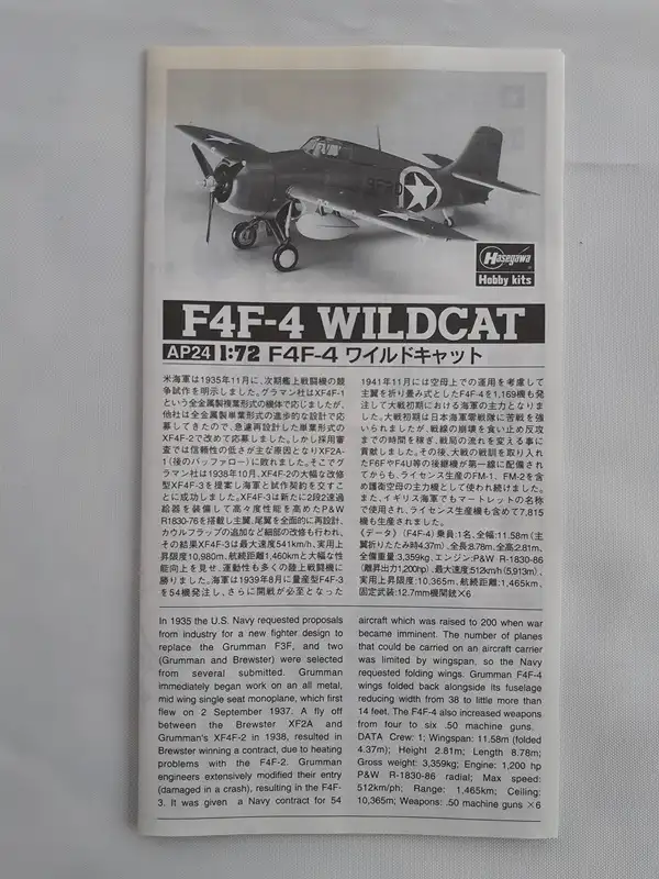 Hasegawa F4F-4 Wildcat-51324-1:72-Modellflieger-Bauteile versiegelt-OVP-1233