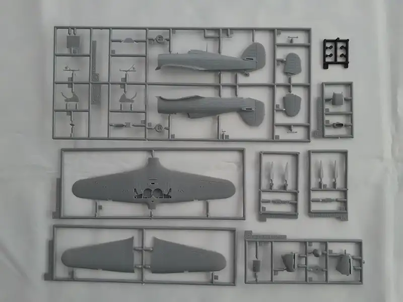 Einzelteile (Plastikbauteile) sind noch am Rahmen fixiert. Sichthülle wurde geöffnet.