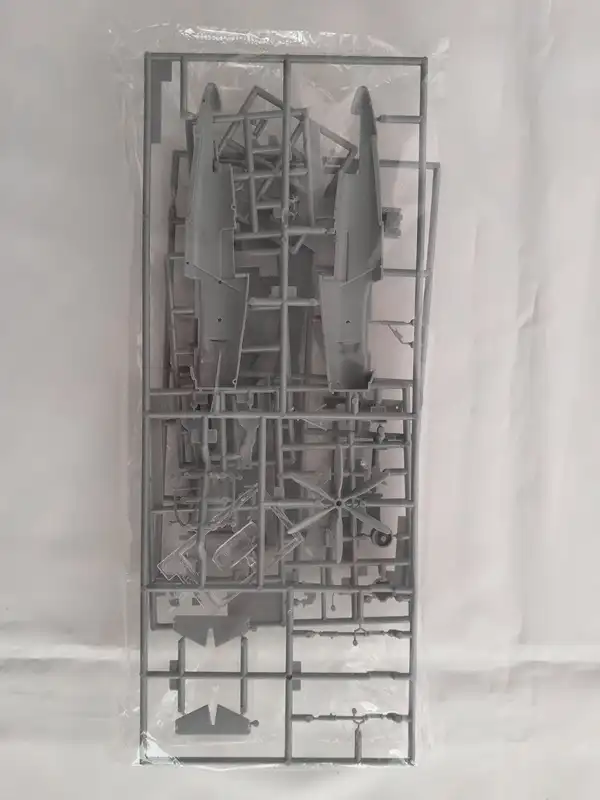 Einzelteile (Plastikbauteile) sind noch am Rahmen fixiert. Sichthülle wurde geöffnet.