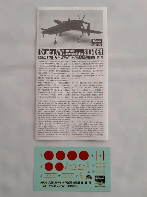 Hasegawa Kyushu J7W1 18-shi Abfangjäger SHINDEN-1:72-51336-Modellflieger-OVP-1216