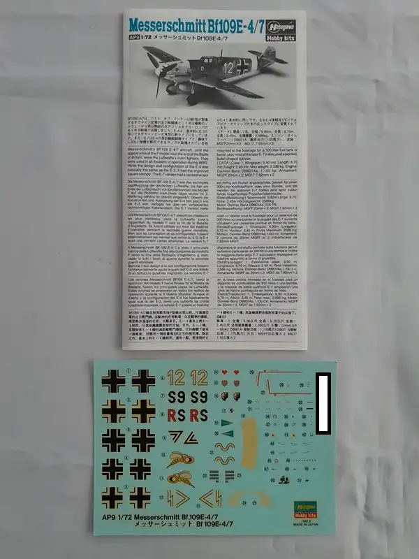 Hasegawa Messerschmitt Bf109E-4/7-1:72-51309 (AP9)-Modellflieger-Bauteile versiegelt-OVP-1173