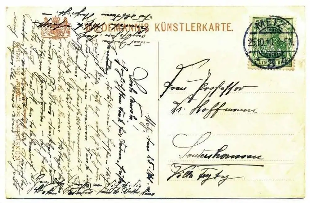 Hauptbahnhof, Metz WIEDEMANNS KÜNSTLERKARTE NO.1921, Stempel: Metz, gelaufen, Maße: 9 x 14 cm, untere linke Ecke best.