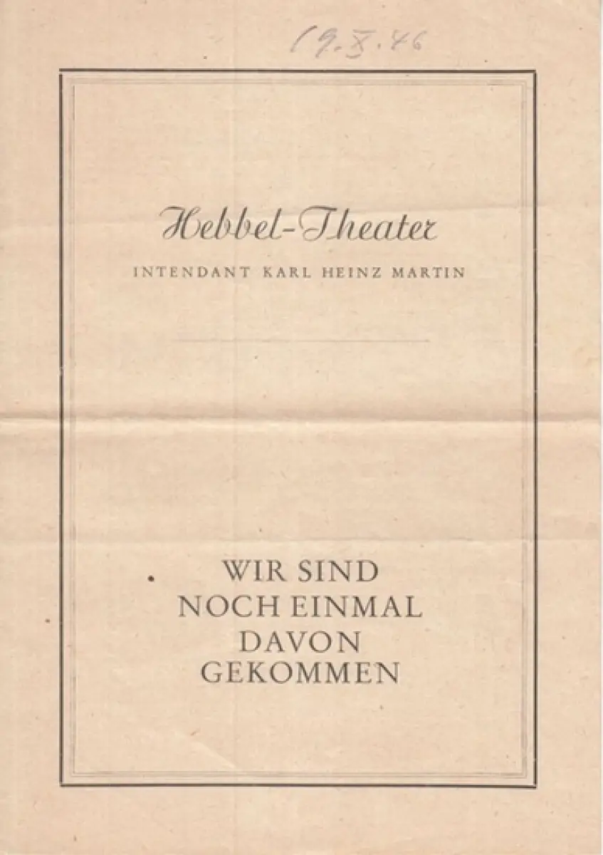 Titel: Hebbel-Theater. Programmheft. Intendant Karl Heinz Martin. Wir sind noch einmal davon gekommen. The skin of our teeth