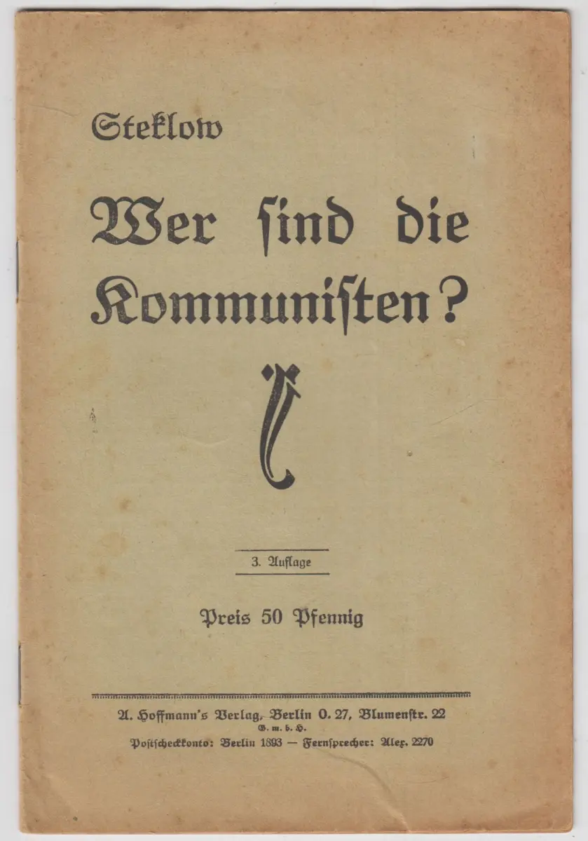 A. Hoffmann's Verlag, Berlin, 1919. 18 Seiten 23,5 x 15,5 cm, Heft mit Drahtklammerheftung