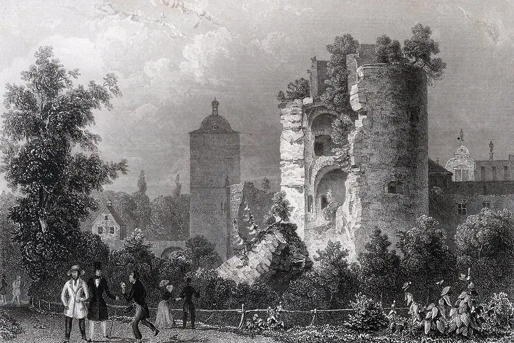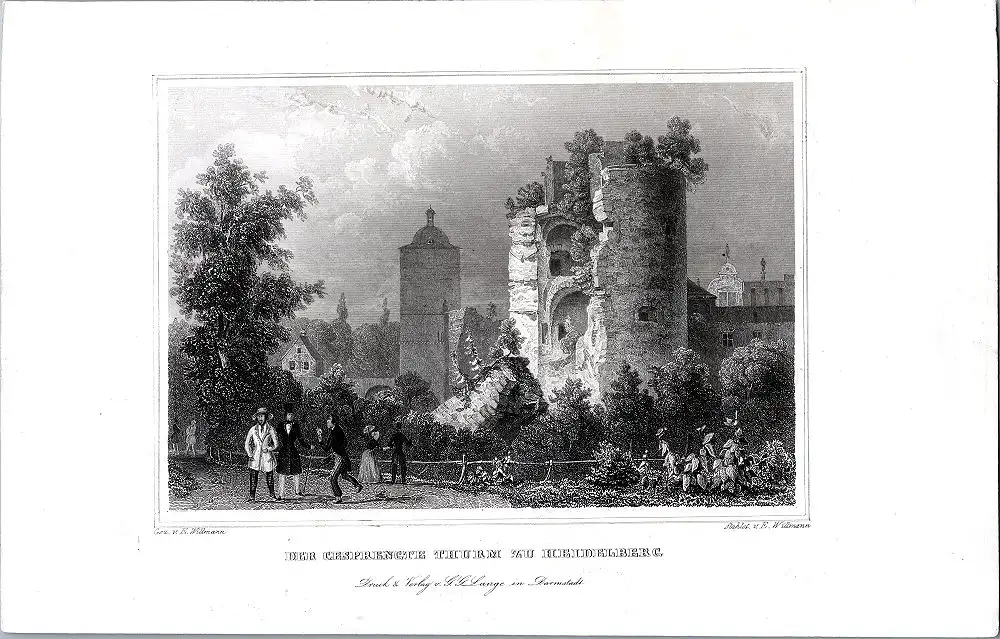 Heidelberg: Der Gesprengte Turm, Originaler Stahlstich, Wikkmann um 1850