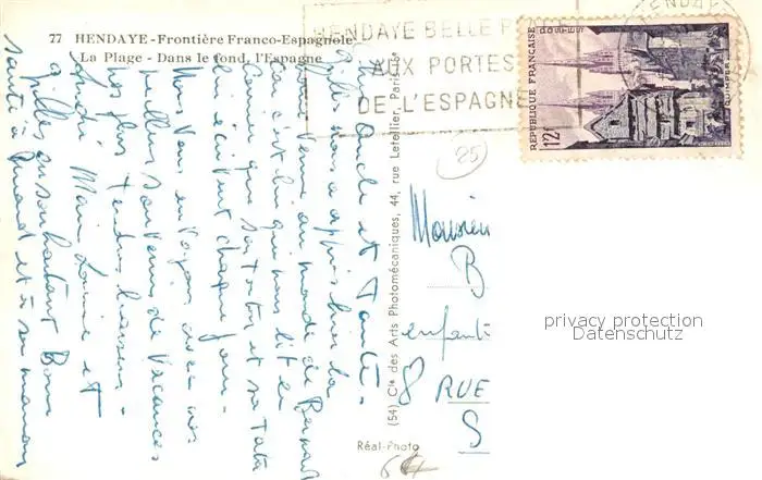 Hendaye_Pyrenees_Atlantiques Plage Frontiere Franco Espagnole Hendaye_Pyrenees postalisch gelaufen nach 1965 Erhaltung siehe scans [LiesaD40] LiesID40