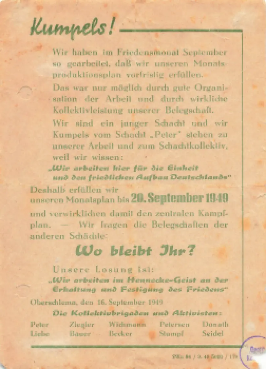 Hennecke Bewegung 1949 Handzettel Oberschlema