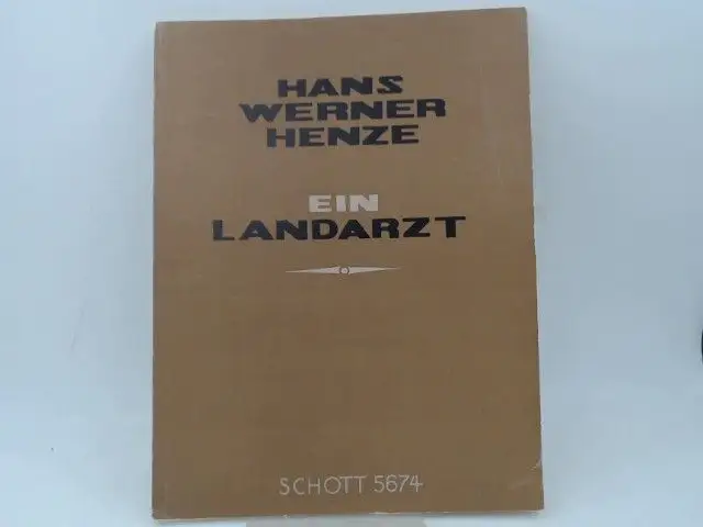 Titel: Hans Werner Henze: Ein Landarzt. A Country Doctor. Oper in einem Akt nach der Novelle von Franz Kafka. Opera in one act after the short story by Franz Kafka. English Translation by Wesley Balk. [Klavierauszug / Vocal Score von Heinz Moehn; Edition Schott 5674]