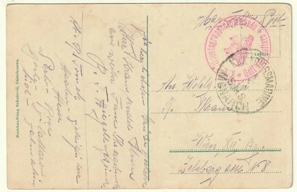 Castelnuovo, Buchh. Sekulovic 1918. Farb. Karte. ca. 9 x 14 cm. Ecken leicht berieb.