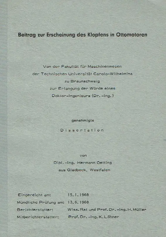 Hermann Oetting: Beitrag zur Erscheinung des Klopfens in Ottomotoren.