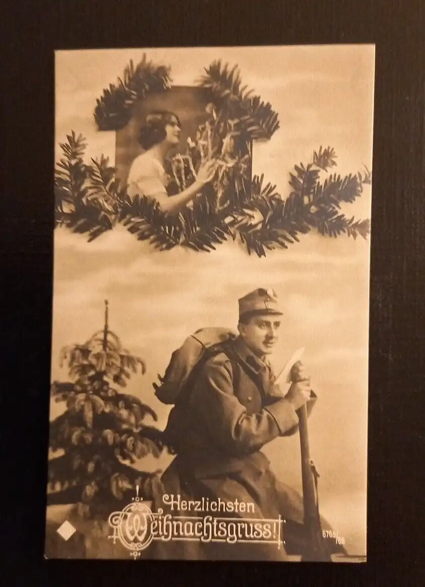 Herzlichsten Weihnachtsgruss Frau Spielt Harfe Soldat Mit Gewehr 165385 Ga G