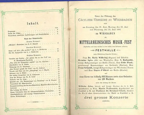 RARITÄT Hessen Wiesbaden Festschrift und Programm für das Mittelrheinische Musikfest zu Wiesbaden von 1891
