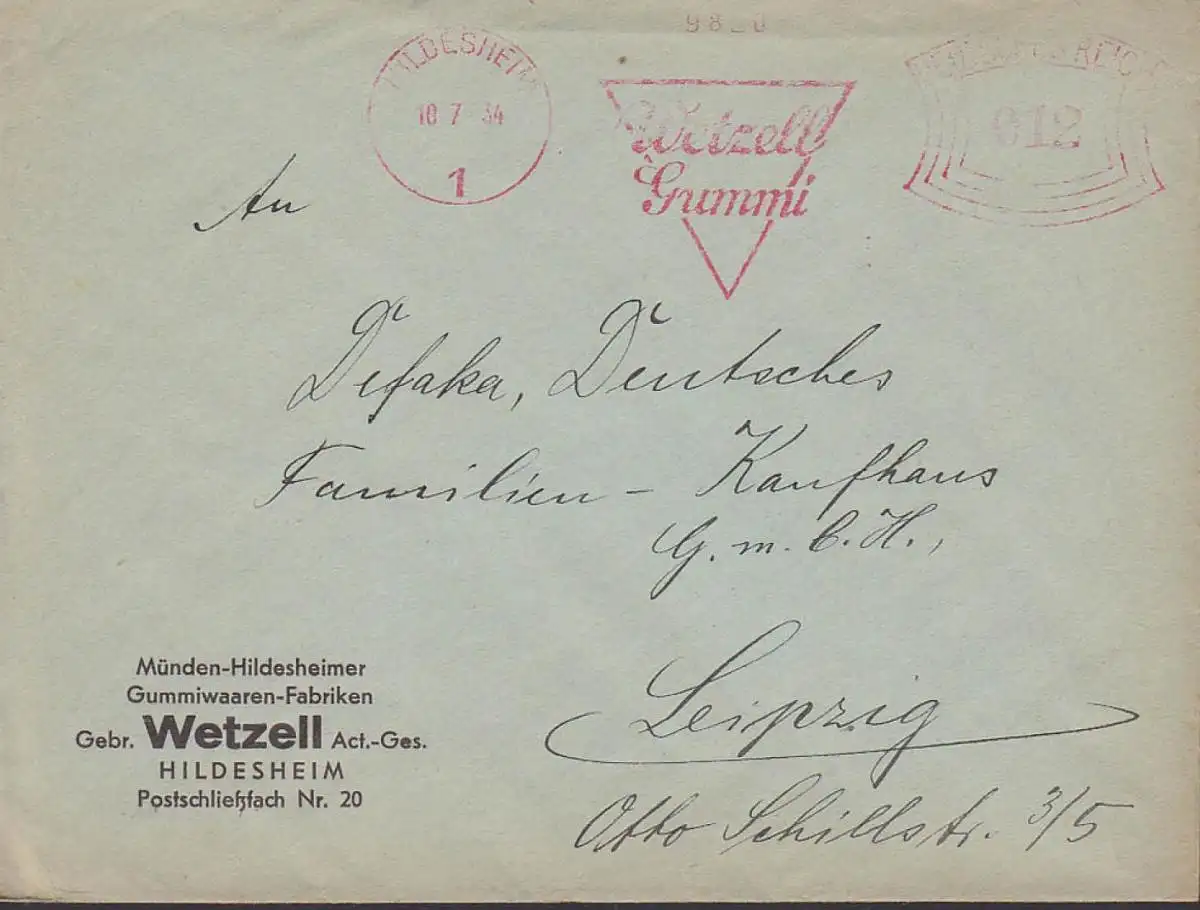 Hiildessheim AFS Fernbrief 10.7.34 Wetzell Gummi
