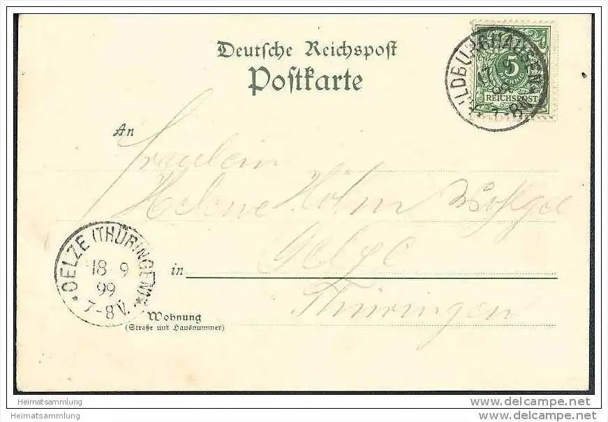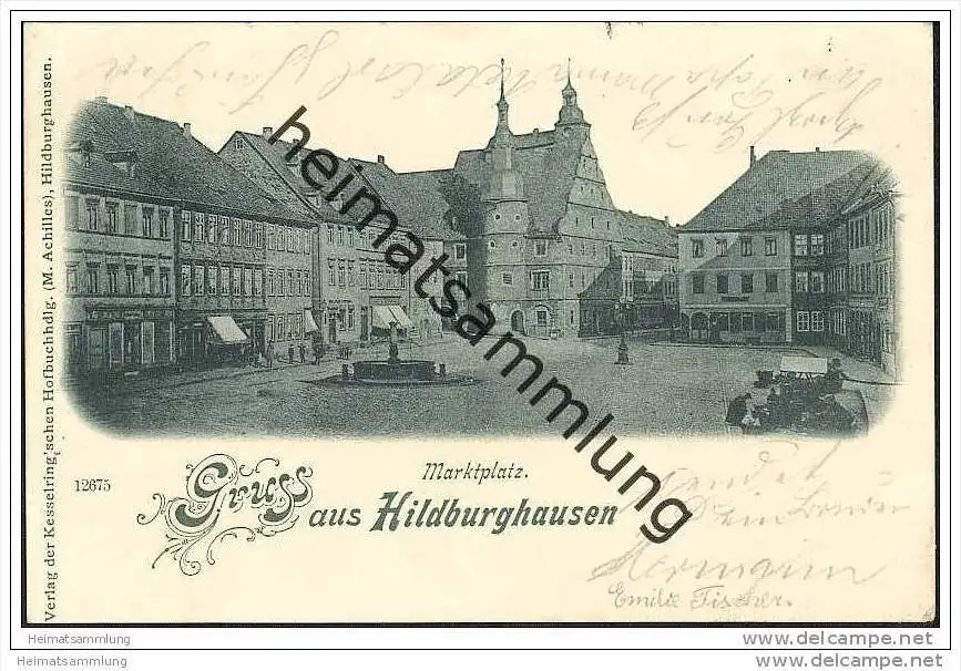 Hildburghausen - Markt - Verlag Hofbuchhandlung Kesselring Hildburghausen - Ecke unten rechts bestossen (G19620) gel. 1899