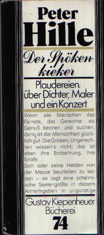 Der Spökenkieker; Plaudereien; Dichter; Maler; Konzert; Gustav Kiepenheuer Bücherei 74; Peter Hille; Literaturwissenschaft; Philosophie