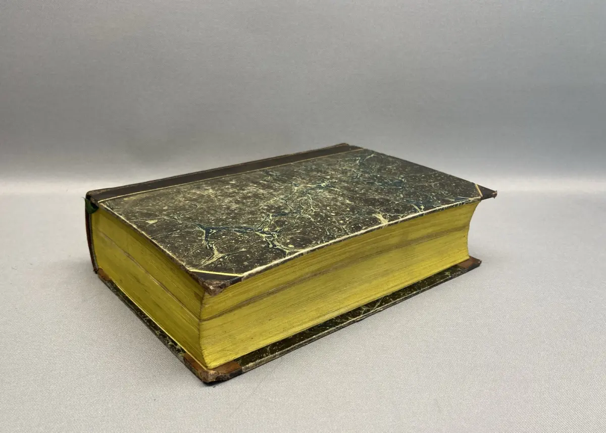 Einband gering berieben und bestoßen, Ecken und Kanten etwas stärker. Gelenke auf Höhe der Kapitale leicht eingedrückt. Papier gering gebräunt und vereinzelt minimal braunfleckig, mit wenigen Notizen in Blei. Einige Seiten und Pläne, darunter das Titelblatt mit kleinen Einrissen an den Rändern, Pläne teils leicht knickspurig. Mit Exlibris von Erika Schug (geb.Thaller) und kleinem Stempel von der Bibliothek Thaller, außerdem mit einem kleinen Stempel von Ernst Thaller.